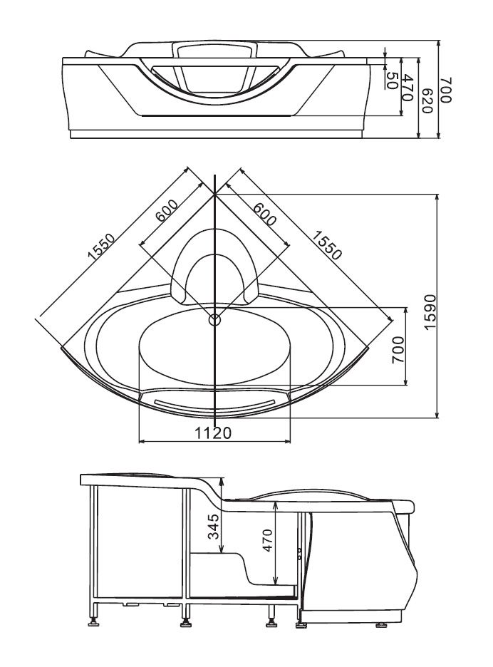Акриловая ванна Gemy G9025 II B 155x155x70