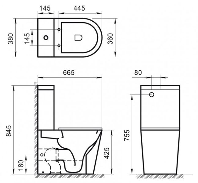 • Укороченный унитаз: