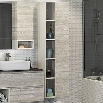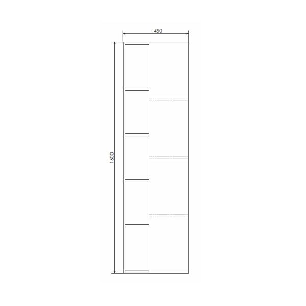 Название: Шкаф-колонна Артикул: Прага 45 (правая) Варианты цвета: Дуб белый/Белый матовый Материал: влагостойкое ЛДСП Габариты ШхВхГ: 450*1600*320 Подвесная шкаф-колонна с одной распашной дверью и пространством для открытого хранения. Створка оборудована петлями с системой плавного закрывания. За створкой 3 горизонтальные полки.