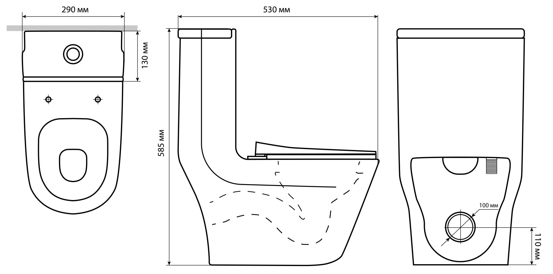 • Укороченный унитаз: