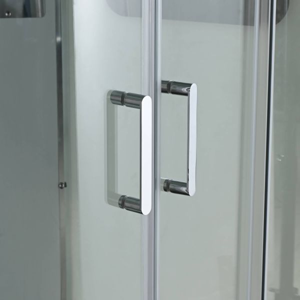 Стильная душевая кабина AvaCan сочетает в себе высокую функциональность, практичность и надежность. При изготовлении применяется безопасное закаленное стекло, надежно фиксируемое алюминиевым профилем.Профиль сделан из алюминия повышенной прочности. Сборка без силикона (увеличивает срок службы, защищает от протечек), внутренняя сборка (облегчает установку и ревизию; позволяет установить в ограниченном пространстве и обойтись без демонтажа других сантехнических приборов), смеситель резьбовой (без хомутов). Съемный экран поддона (позволяет осуществлять подключение и ревизию сифона).Двойные металлические ролики дверей (распределение нагрузки на два ролика, увеличивают срок службы). Душевая штанга(позволяет регулировать по высоте ручную лейку), ручная арома-лейка с витамином С (картридж в комплекте,есть возможность замены или удаления картриджа), полочки(из стекла, с ограничителем), сифон с гидрозатвором, сенсорный пульт управления с функциями: блютуз, LED подсветка, радио, вытяжка, гидромассаж спины, тропический (верхний) душ.
