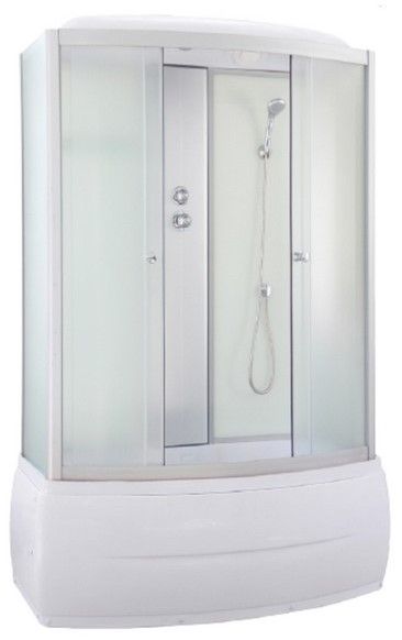 • Внутри кабины усиленная полка 30 см с ограничителями. В кабине установлен однорычажный смеситель, верхний (тропический) душ, ручной душ, вентиляционные отверстия, слив – перелив, шланг длиной 65 см, "антизапах". Вся фурнитура хромированная.