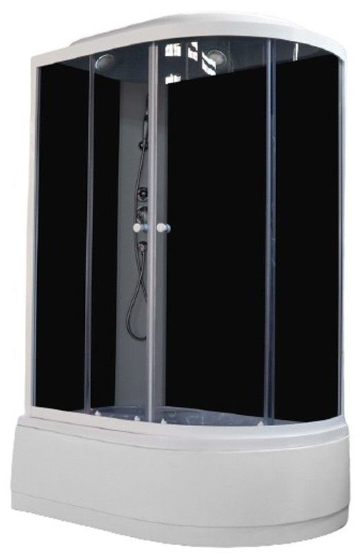 Левосторонняя кабина с высоким поддоном. Сочетание черного стекла и белого профиля подчеркивают стильный дизайн модели. Душевая кабина станет отличным дополнением в современном оформлении ванной комнаты.Достоинства: