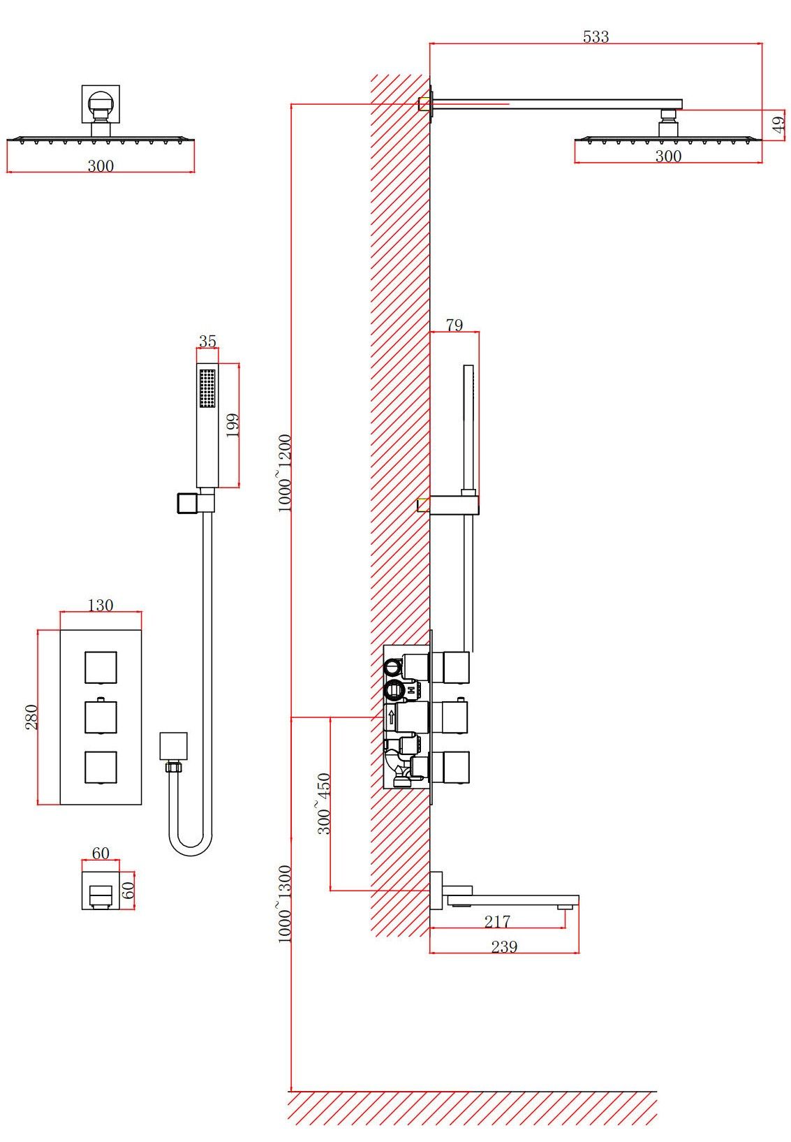 • Размер ручного душа, см: