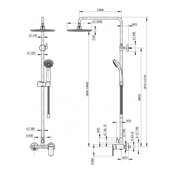 • Размер ручного душа, см: