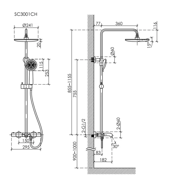 Душевая стойка SANCOS Game для душа/ванны с термостатическим смесителем, изливом, верхним, ручным душем и шлангом в комплекте цвет хром, арт. SC3001CH