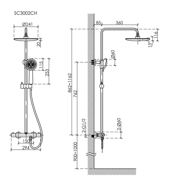 Душевая стойка SANCOS Game для душа с термостатическим смесителем, верхним, ручным душем и шлангом в комплекте, цвет хром, арт. SC3002CH