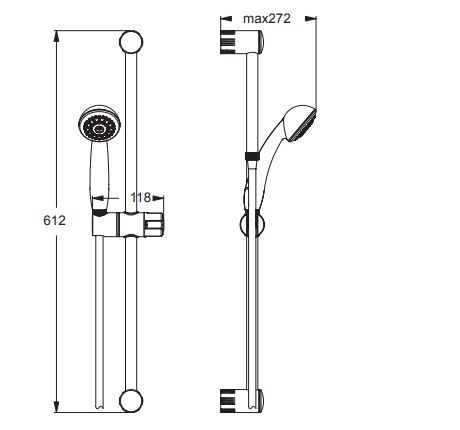 SEVAJET S1 Душевой набор: душевая лейка, диаметр 70 мм, 1-функциональная, без ограничителя потока, штанга 600 мм, Ø19 мм, пластиковый держатель, металлический шланг для душа 1500 мм.Душевой набор со штангой