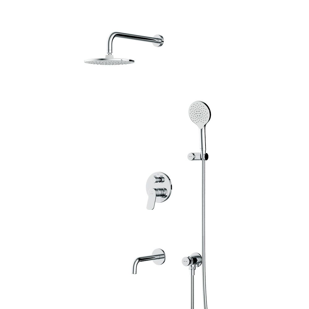 Набор встроенного оборудования X-Joy - идеальное решение для вашей ванной комнаты. Встроенный механизм освобождает ванную комнату от лишних деталей превращая пространство в идеальное место для себя. Набор включает в себя: верхний тропический душ 22 см, ручной душ, держатель ручного душа, излив и смеситель.