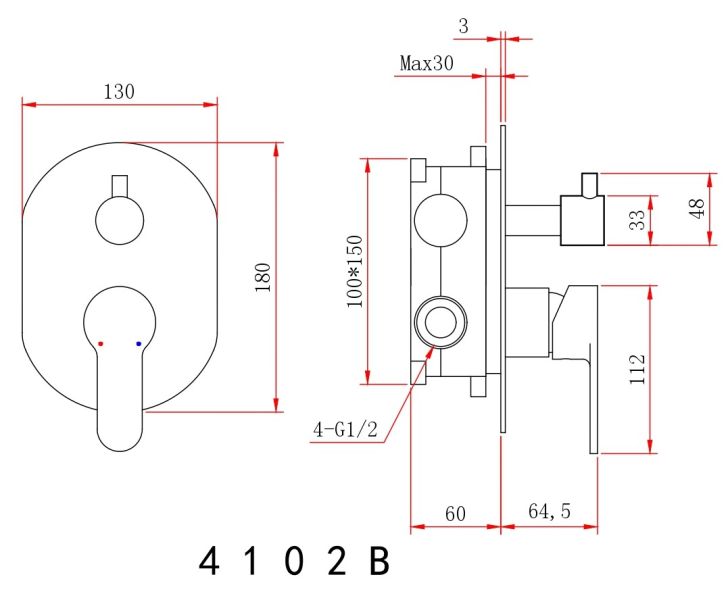 • Размер верхнего душа, см: