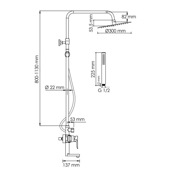 - Размер верхнего душа, см:30