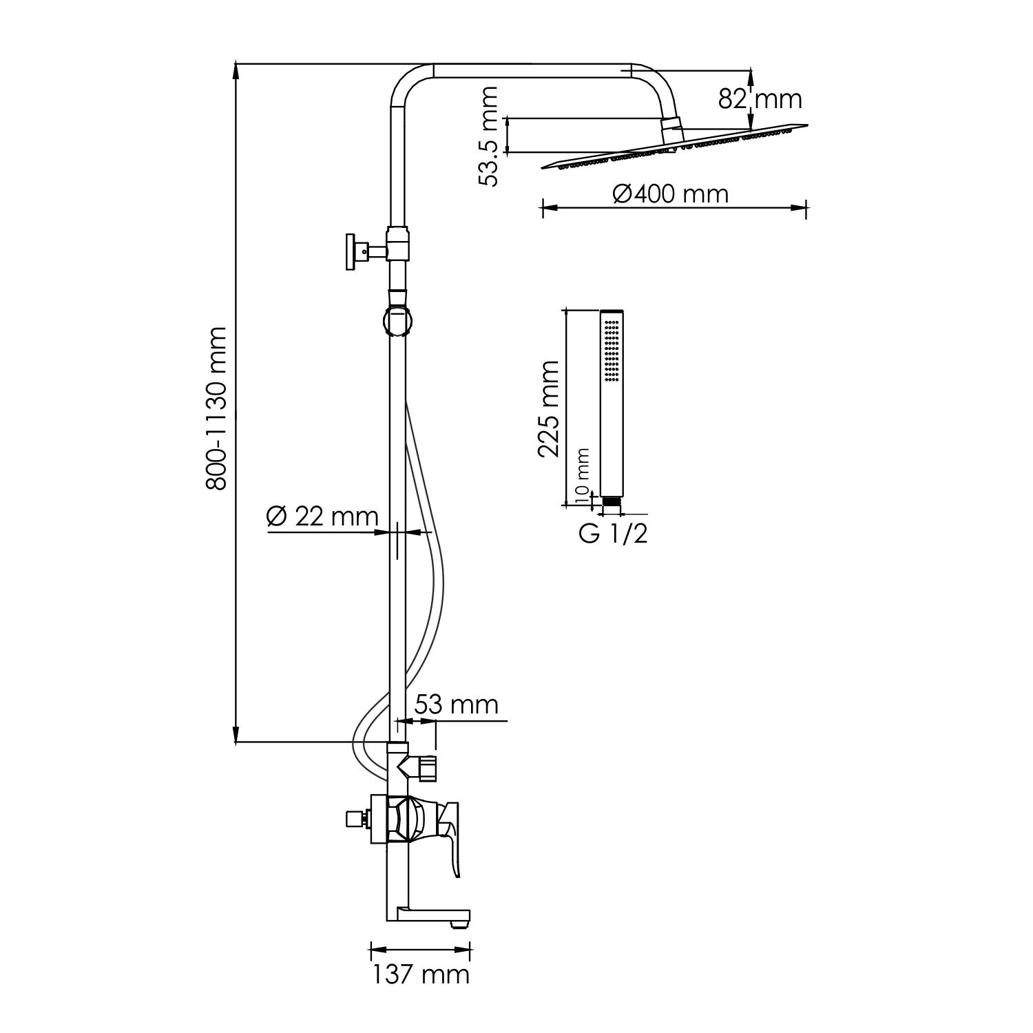 • Размер ручного душа, см: