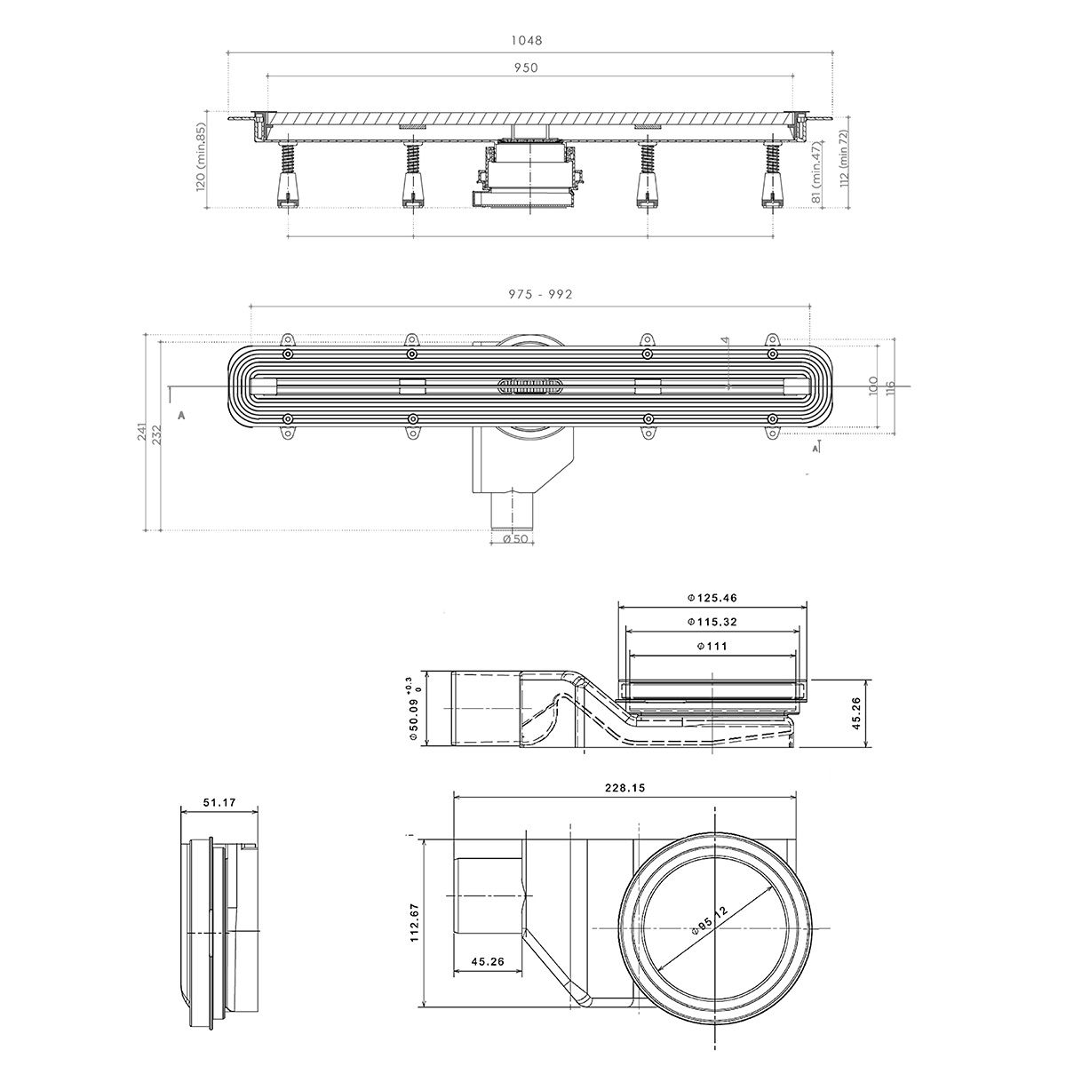 Душевой лоток BETTOSERB 13100036 Slim Line 950