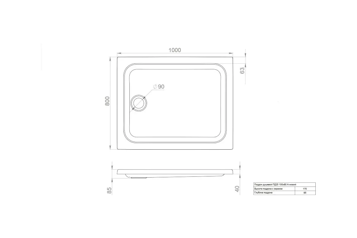 - Высота поддона 170мм