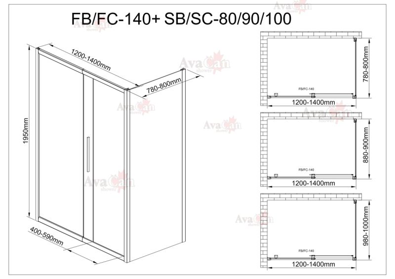 Душевой уголок AvaCan FB 120-140 + SB 80 чёрный