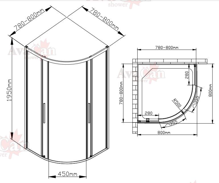 Душевой уголок AvaCan HC 80x80 см хром