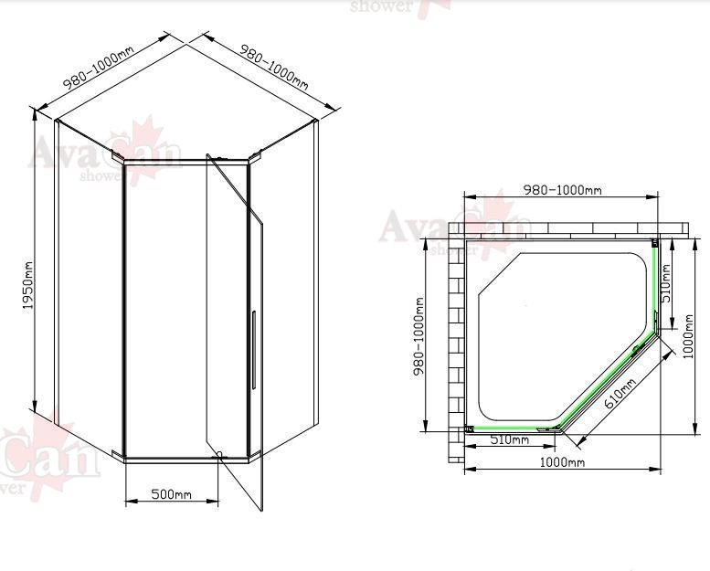 • Душевой уголок AvaCan PB 100 размер 980-1000-195