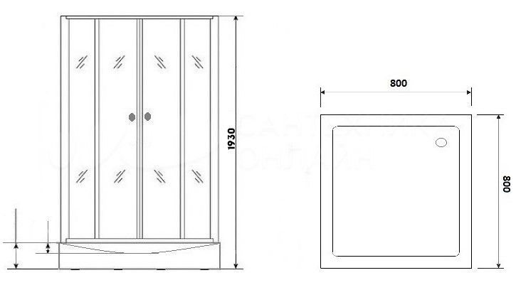• Низкий квадратный поддон (10 см) с рельефным дном будет особенно удобен пожилым и людям с инвалидностью.