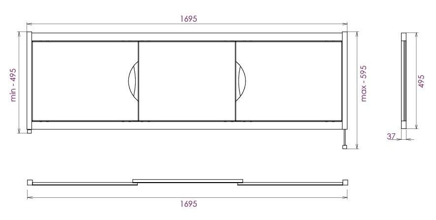 Ножки позволяют регулировать экран по высоте от 52 до 60 см, благодаря этому экран является универсальным и впишется в интерьер любой ванной комнаты.