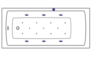 - Аэромассажная система (10-12 форсунок AERO-JET) с функцией регулировки интенсивности массажа;