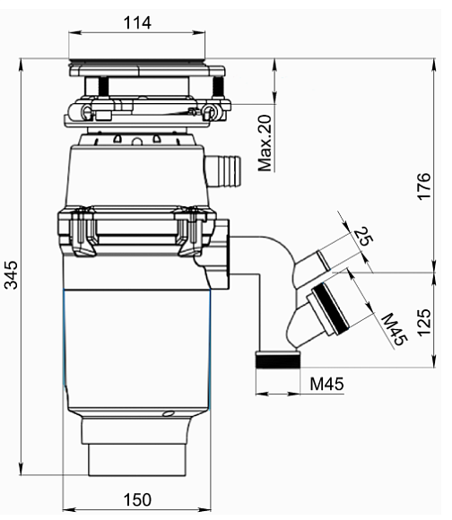 Дополнительные особенности, такие как антикоррозийное покрытие камеры дробления и система автоматического перезапуска, обеспечивают долговечность и безопасность эксплуатации. Модель подходит как для стальных, так и для кварцевых моек, что делает ее универсальным решением для кухни.