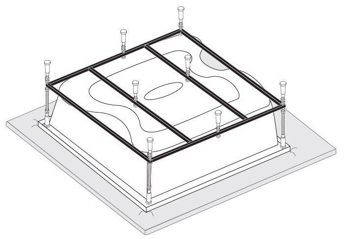 Усиленный цельносварной стальной каркас для ванны изготовлен из квадратного металлического профиля 2х2 см и окрашен темно-бронзовой молотковой краской. Каркас имеет 8 ножек и 4 опоры в борт ванны снизу. Предназначен для использования во влажных помещениях.
