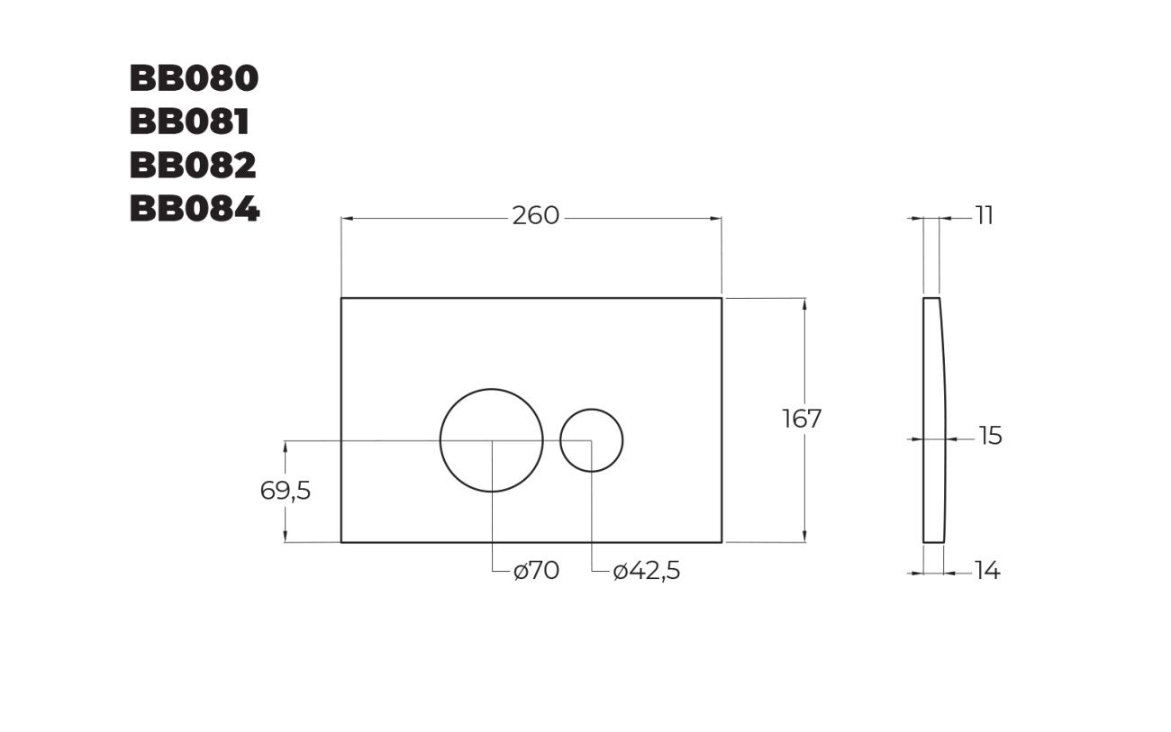 Кнопка смыва BB081CR : длина - 26 см, ширина - 16,7 см; механическая система двойного слива;... Подробнее