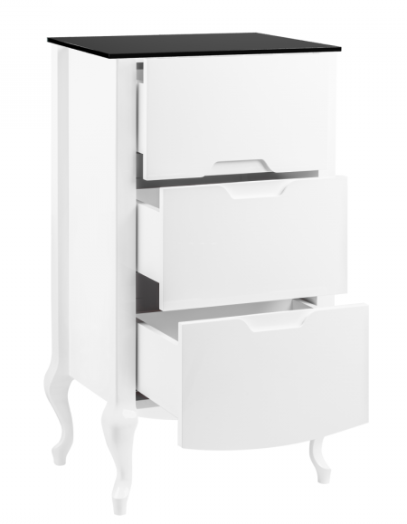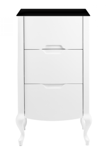 Премиальная отделка: комбинация глянцевой белой эмали, массива бука и черной стеклянной столешницы