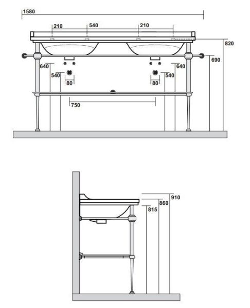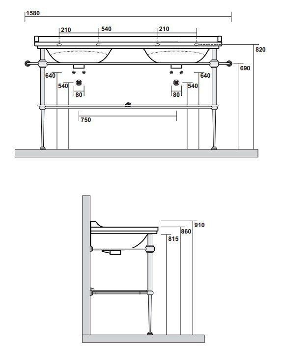 Консоль для раковины Kerasan Waldorf 9195K3br бронзаKerasan Waldorf 9195K3 Консоль для раковины на 150 см. Металлическая структура для раковины 150 см, со стеклянной полочкой, цвет бронза (из 2-х коробок: арт. 919593+920293 и 919801). Подходит к 4143K1 раковина керамическая двойная 150х55 см, c 1 отверстием под смеситель на чашу, белая.