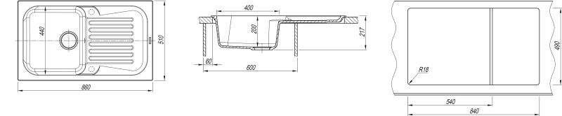 Мойка врезная Florentina Арона 860, изготовлена из композитного материала (искусственного камня).