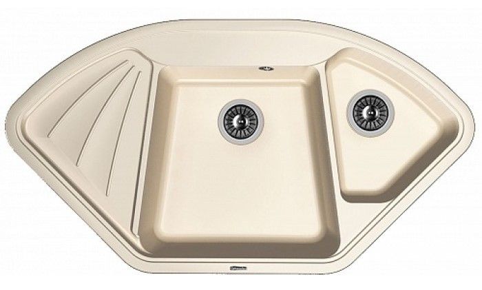 Угловая врезная мойка с двумя чашами для кухни Florentina Капри изготовлена из композитного материала.