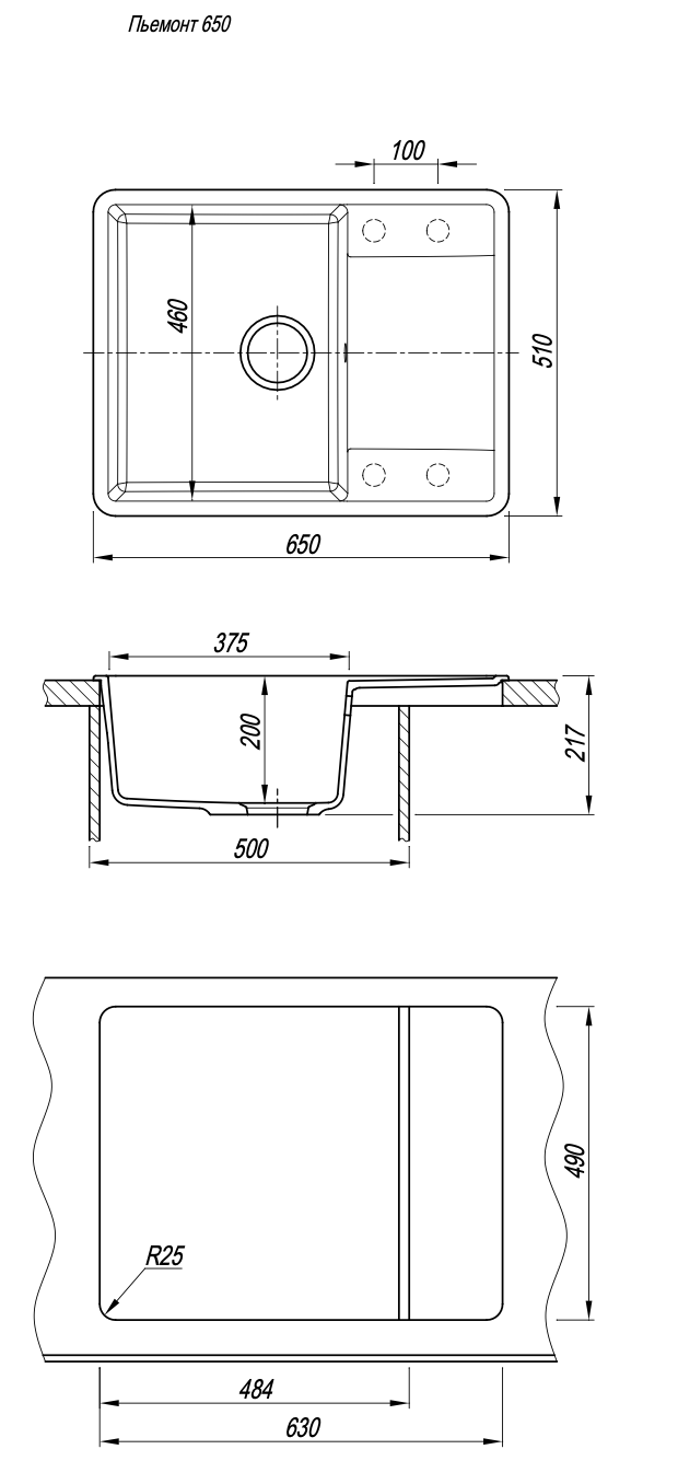 Кухонная мойка Florentina Пьемонт 650 антрацит