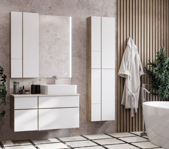 Шкаф Акватон Мишель 43 дуб эндгрейн/белый не только восхитительное украшение для ванной комнаты, но и превосходное функциональное решение любого санузла.Компания Акватон использует при производстве высококачественные водоотталкивающие материалы (ДСП), соответствующие всем необходимым требованиям безопасности. Коллекция Мишель выполнена в эксклюзивном дизайнерском решении в лучших традициях современного стиля. Белый, основной цвет исполнения Акватон Мишель, безупречно впишется в любой дизайн проект. Шкаф предусматривает удобную и вместительную систему хранения, состоящую из дверей. Качественные доводчики позволяют обеспечить мягкое и тихое закрывание. Ключевые габариты изделия: ширина 43 см, глубина 15 см, высота 101 см.Россия родина бренда Акватон, вся продукция производится со строгим соблюдением всех стандартов, благодаря чему можно быть абсолютно уверенным в надежности и высоком качестве. Шкаф Акватон Мишель 43 дуб эндгрейн/белый создаст уют и комфорт в любом дизайнерском решении, и ванная комната обретет неповторимый элемент интерьера.