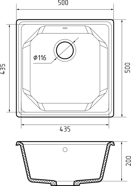 Размер чаши: 435 * 435 * 200 мм