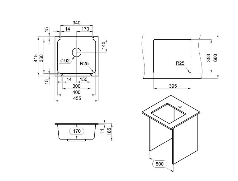 - Отверстия под смеситель:1