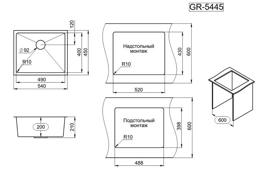 Мойка кухонная Granula 5445U, ГРАФИТ МАТОВЫЙ