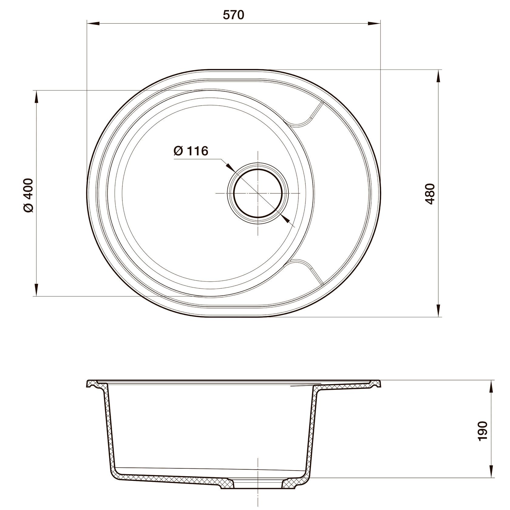 Размер чаши, мм: 400x400