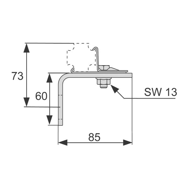 Одинарное крепление для монтажа стального профиля TECEspring к конструкции. Узел в сборе из оцинкованнои стали в комплекте с крепежными элементами