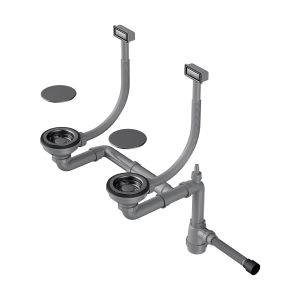 Арматура для двухчашевых моек с прямоугольными переливами, декоративными решетками и декоративными накладками. Подходит для моек из серии AKISAME.