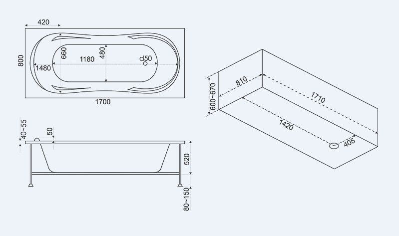 Экраны (панели) применяют не только для создания интересных интерьеров ванной комнаты. Их также используют для скрытия неприглядных инженерных коммуникаций, сливных труб и прочего сантехнического оборудования: кранов, вентилей и т. д. Красиво оформленный экран под ванну выступит отличным дополнением любого интерьера, придав ему ноток экстравагантности и необычности.Панель фронтальная BAS Ахин предназначена для установки к акриловой ванне модели Ахин размером 1700х800 мм. Панель из акрила устанавливается спереди ванны и позволяет придать ее конструкции целостный и эстетичный вид. Отличается высокой прочностью, а также стойкостью к загрязнению и механическим повреждениям. Она создана по соответствующим размерам и имеет нейтральный дизайн, подчеркивая эстетичность изделия. Панель позволяет придать ванне завершенность и практичность. Экран устраняет проблему лишней уборки, так как защищает пространство под ванной от засорения. Кроме того, он легко скрывает коммуникации или монтажные конструкции, декорируя их.Используемый в производстве акрил практически не подвержен деформациям. Панели для ванны стойкие к воздействию влаги и сохраняют свой внешний вид даже при повышенном уровне влажности. Материал экологичен и не допускает размножения бактерий, оставаясь экологически безопасными и гипоаллергенными.