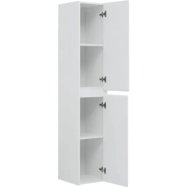 Шкаф-пенал для ванной Aquanet Nova Lite белоснежного цвета из влагостойкой ламинированной древесно-стружечной плиты выглядит нарядно. При ширине всего 35 см в нем, тем не менее, поместятся полотенца, банные халаты  или дополнительные пеномоющие средства, для которых найдется место на четырех полочках, скрытых от посторонних глаз за двумя дверцами, оборудованными петлями с доводчиками. Пенал универсальный. В базовой комплектации он предусматривает открывание в правую сторону, но при необходимости фасады можно перевесить для левого открывания.можно заказать дополнительно.