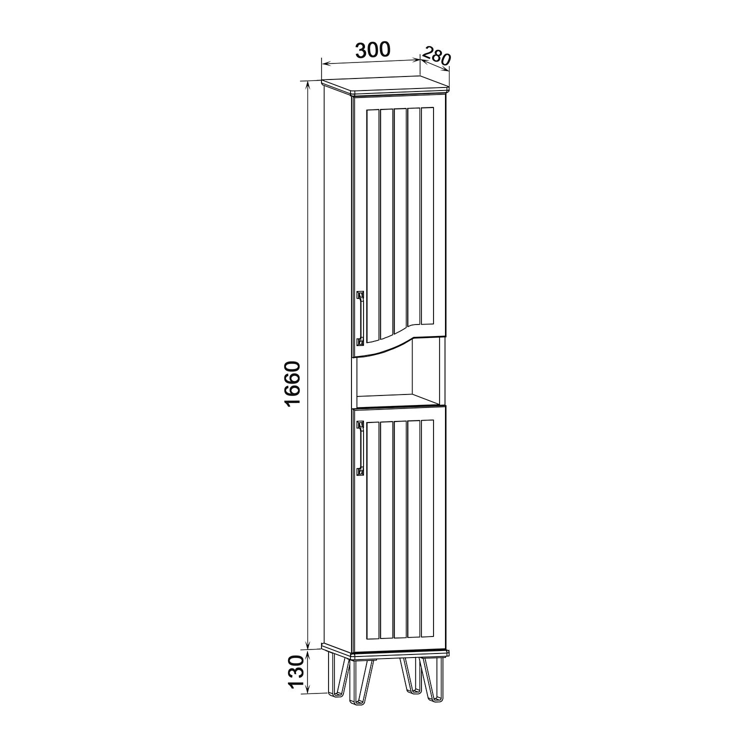 Шкаф-колонна напольный с двумя распашными дверками и открытой нишей посередине. В верхнем и нижне... Подробнее