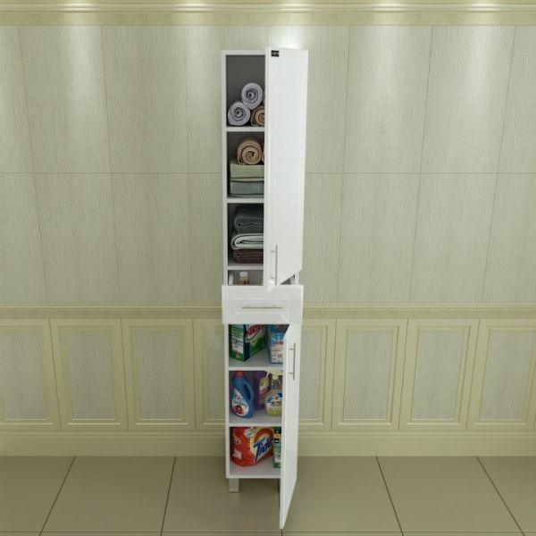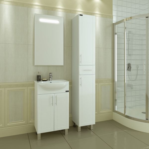 Шкаф-пенал СанТа отличное решение для создания комфортной атмосферы в любой ванной комнате. Напольный способ установки производится непосредственно на пол, при этом конструкция максимально устойчива при серьезных физических нагрузках. В производстве используют только качественные влагостойкие материалы (ВЛДСП), в составе которых полностью отсутствуют опасные вещества. Серия Вегас отличается превосходным дизайном с соблюдением всех существенных элементов современного стиля. Основным цветом, в котором выполнен шкаф-пенал СанТа является белый, безупречно впишется в любой дизайн проект. Шкаф-пенал предусматривает удобную и вместительную систему хранения, состоящую из дверей.Страной бренда СанТа является Россия, все товары производятся с выполнением соответствующих стандартов качества, что позволяет быть полностью уверенными в долговечности и надежности. Шкаф-пенал СанТа поможет сделать уютным любой интерьер и создать идеальную ванную комнату.