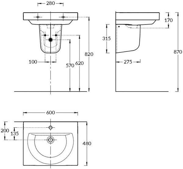 Подвесной полупьедестал PRO позволяет скрыть сифон и технические отверстия при установке раковины BUONGIORNO шириной 55 до 60 см без мебели и раковины PRO шириной 50 см. Такое решение подойдёт для гостевых санузлов, а также для проектного использования.