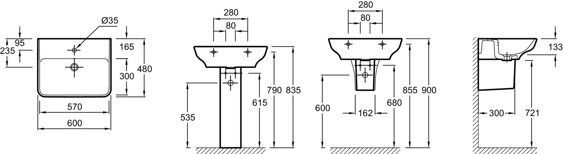 РАЗМЕТКА СВЕРЛЕНИЯ ОТВЕРСТИЯ ДЛЯ СМЕСИТЕЛЯ: 1 отверстие для смесителя