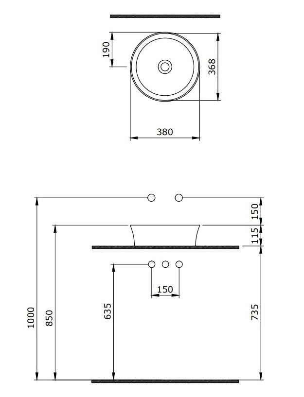 • Отверстия под смеситель: