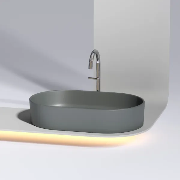 Умывальник чаша накладная овальная (цвет Темный Антрацит Матовый) Element 608*385*122мм