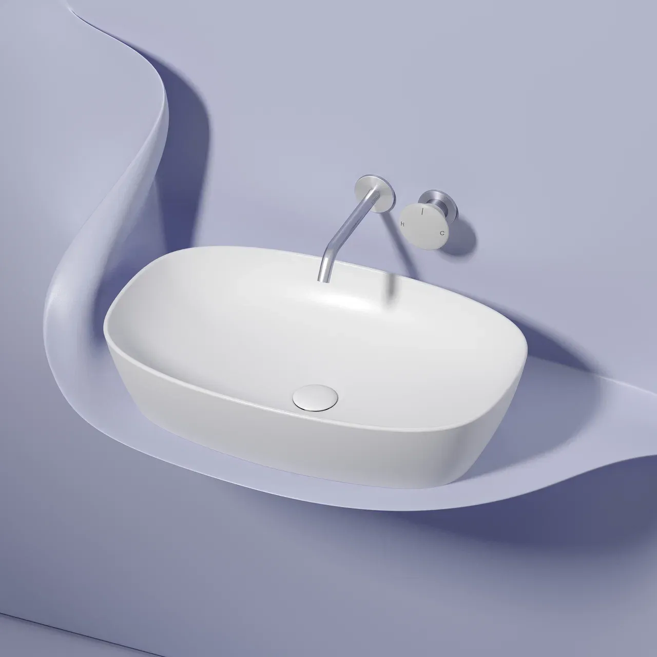 Умывальник чаша накладная овальная (цвет Белый Матовый) Element 600*380*138мм