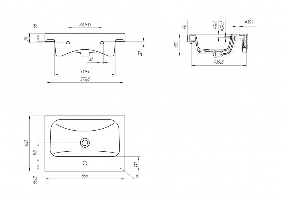 • Отверстия под смеситель: