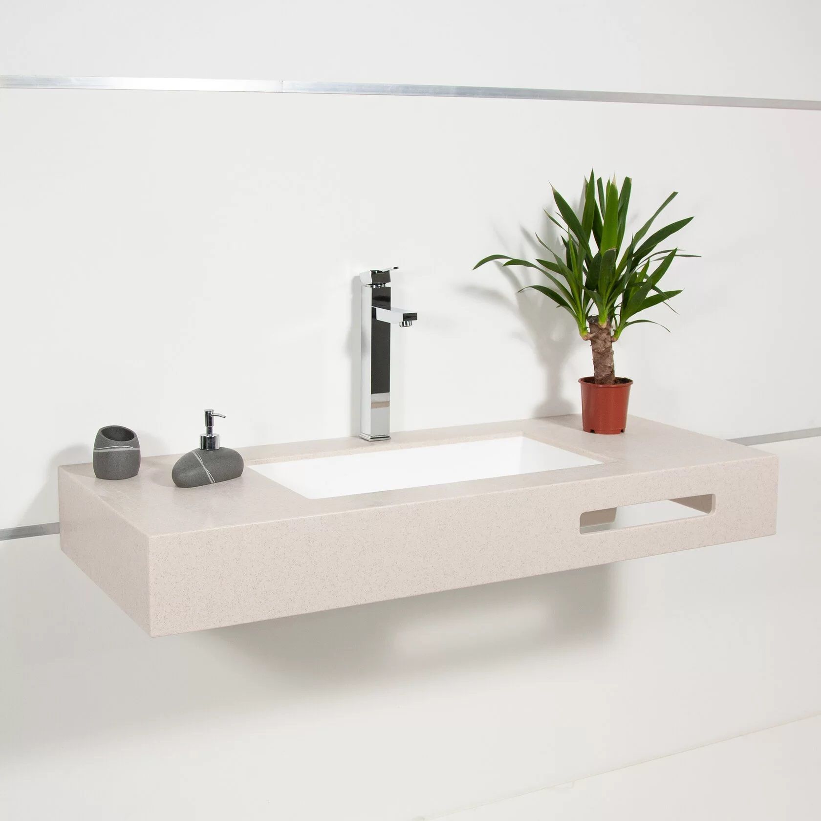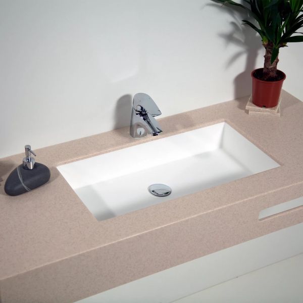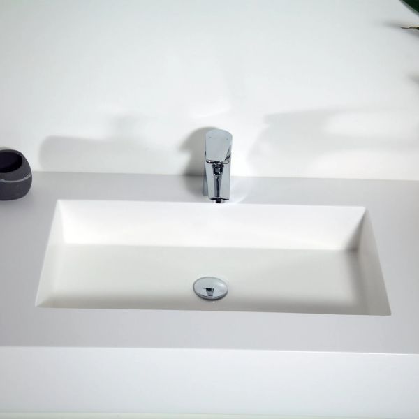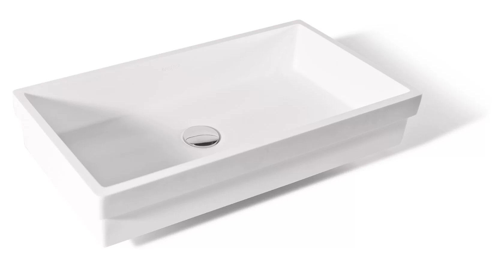Раковина из искусственного камня для ванной комнаты линейки Montebianco Castello Uno / Castello Due.Практичной прямоугольной формы со смещенным от центра сливным отверстием. Установка любым из двух способов: накладным на поверхность столешницы или мебели сверху или бесшовно вклеиванием в столешницу любого цвета, создавая цельную поверхность, единое изделие. Уход за раковиной из искусственного камня прост: в большинстве случаев достаточно протереть поверхность влажной губкой с чистящим средством. Материал не впитывает влагу, не порист, непроницаем для плесени, бактерий и грибков. Castello Due имеет матовую, бархатистую поверхность. Полимерный материал принимает температуру окружающей среды, поэтому в жилом пространстве данная модель раковины всегда будет приятной на ощупь. Отличие Castello Due от Castello Uno – в размерах (Castello Due заметно длиннее) и вариантах установки.